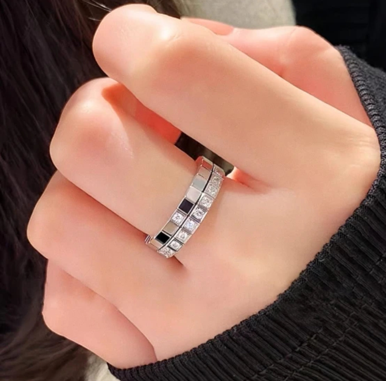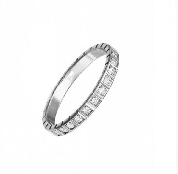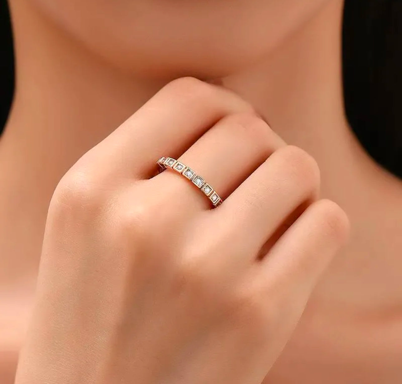 A timeless eternity ring with a continuous loop of pavé-set square diamonds, radiating enduring elegance.