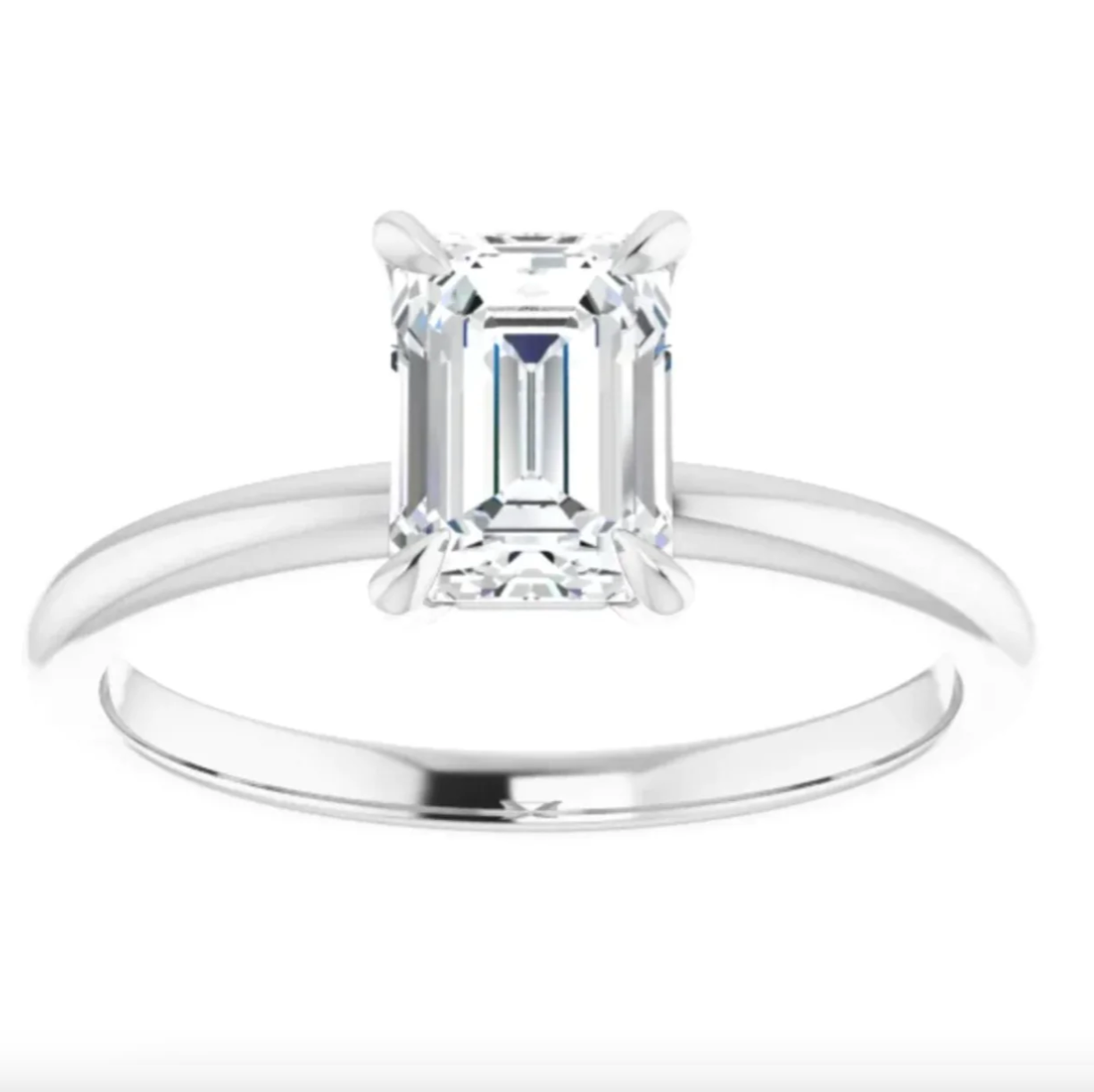 This beautiful engagement ring is the one and only classic Radiant lab grown diamond 14K gold solitaire engagement ring. You can't go wrong with this classy design. It will always be timeless. Brides love this solitaire engagement ring because you can mix and match any women's diamond wedding band & women's moissanite wedding bands for the perfect stack. The attention is all on her, that one-of-a-kind center stone in your ring. Perfect for our radiant shape lovers. These gorgeous solitaires are also available with lab grown diamonds!