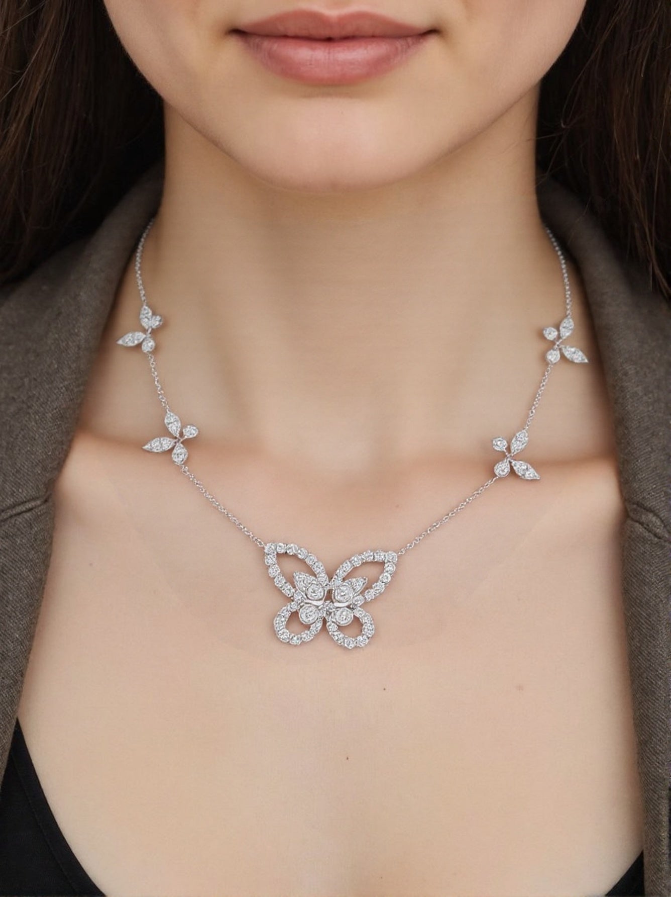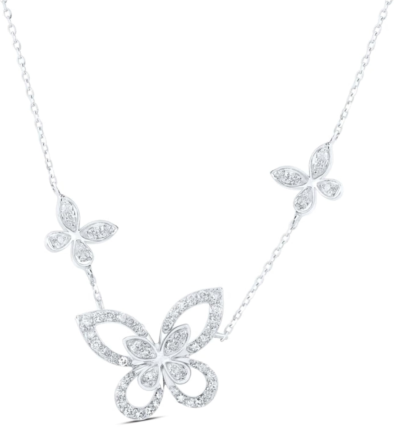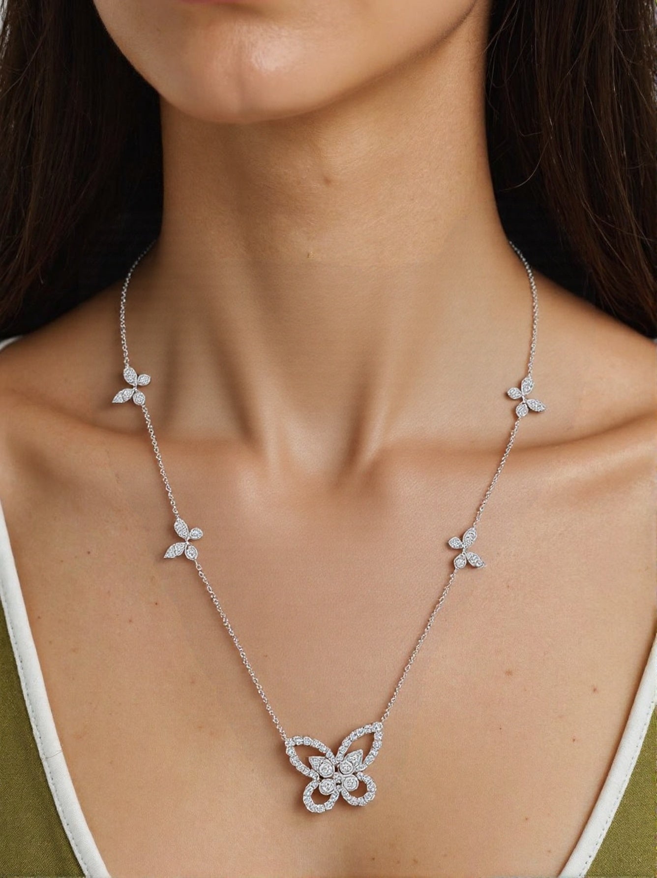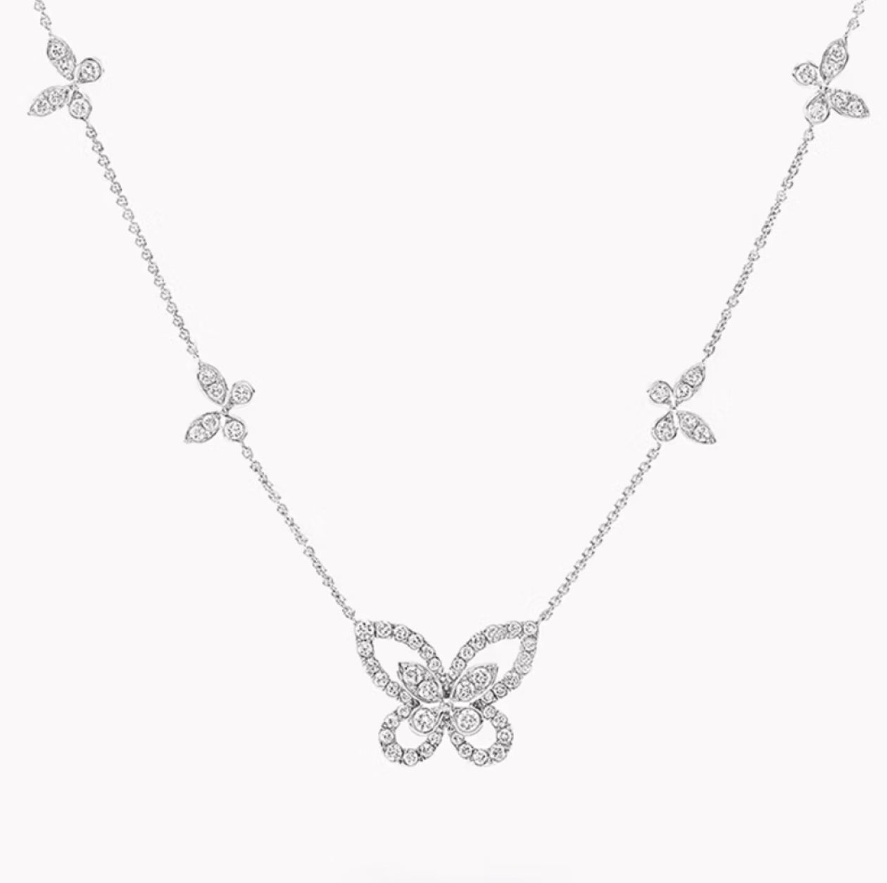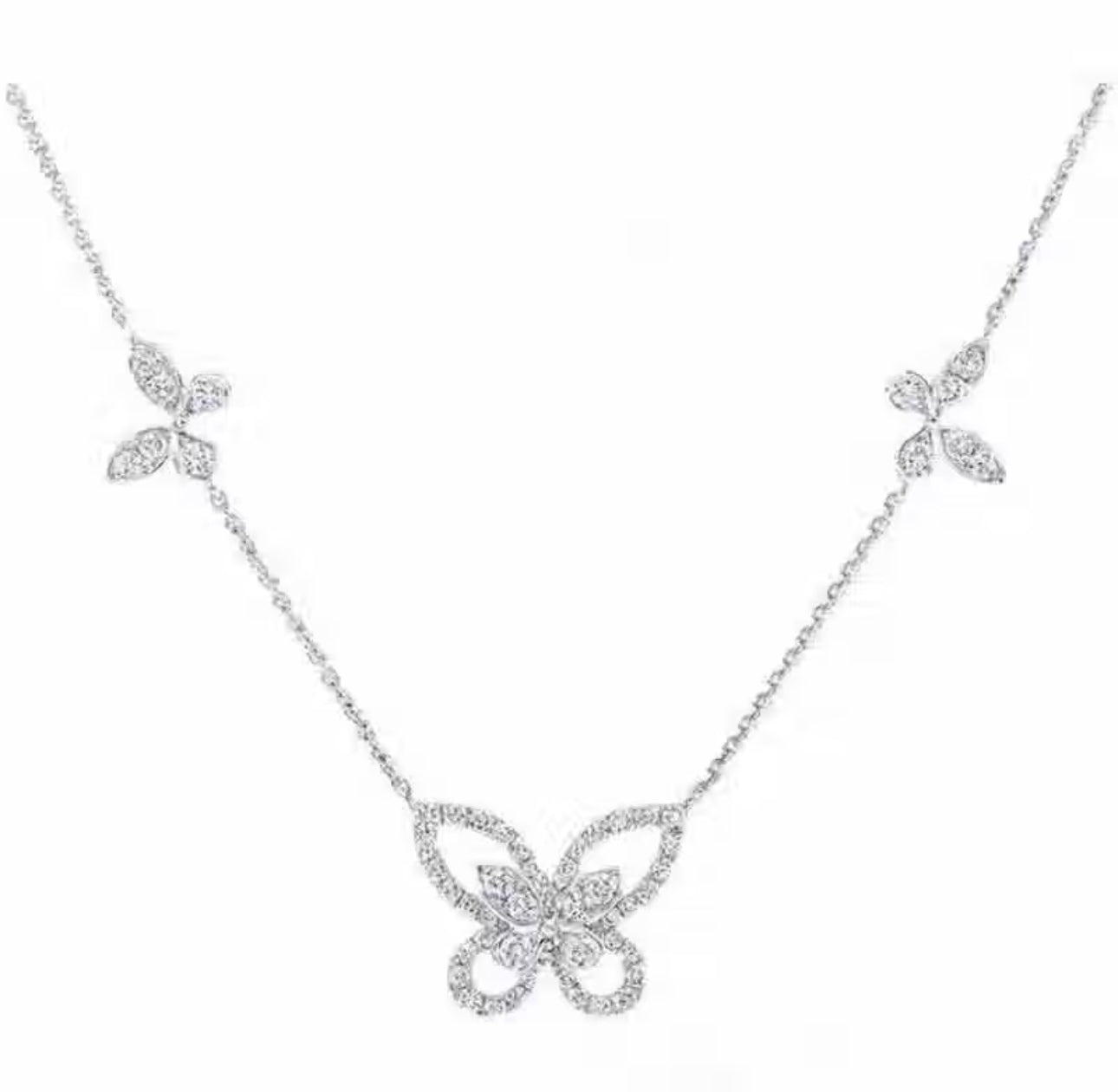 1 Carat 18K White Gold All Butterfly Diamond Necklace
