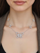 An exquisite necklace featuring five distinct butterflies, each encrusted with sparkling diamonds.