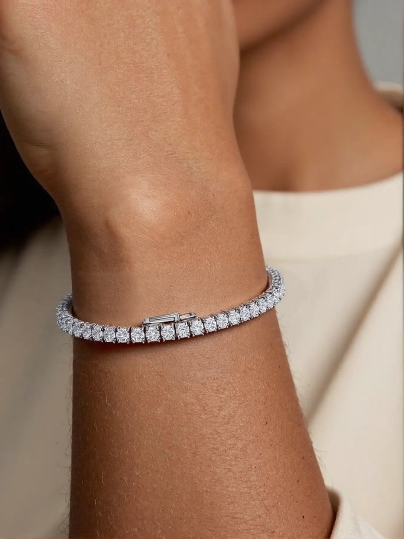 A luxurious eternity bracelet featuring a continuous loop of diamonds for a look of timeless elegance.